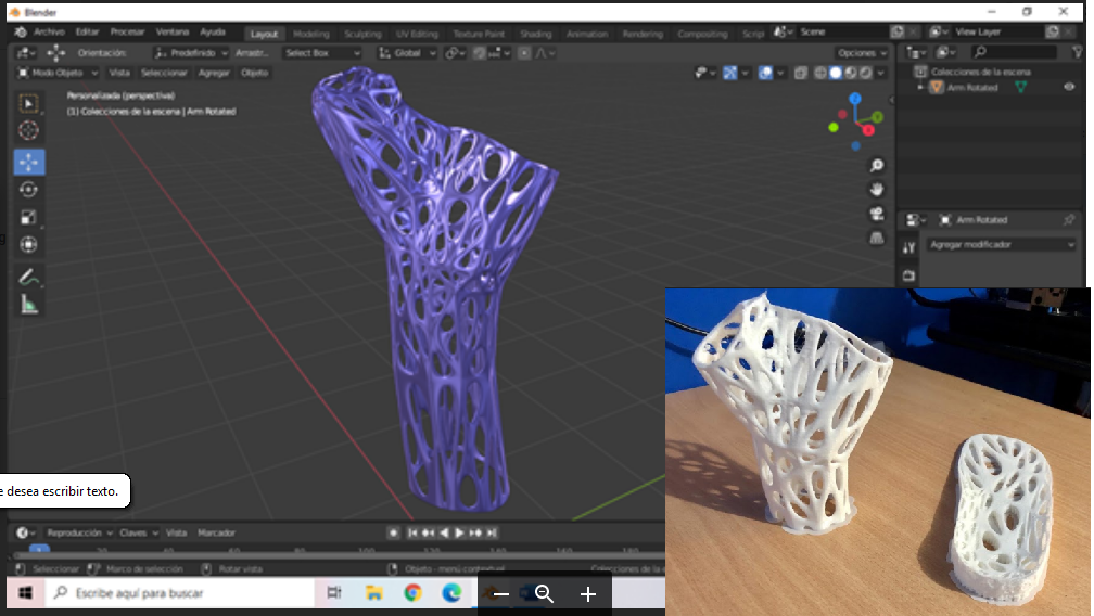 Férula prototipo con impresión 3D para la inmovilizar la muñeca, corregir para llevar a la  posición natural y evitar deformaciones; mientras el paciente recibe tratamientos de recuperación.