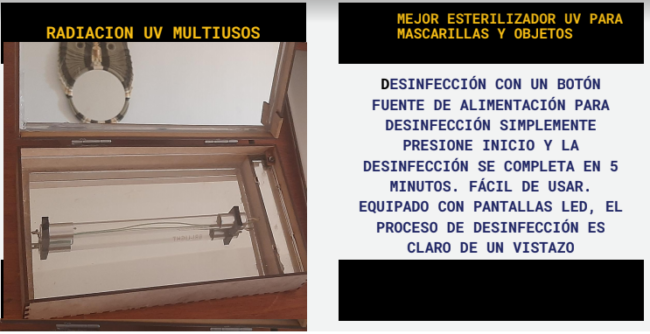 Sistema que desinfecta productos con rayos UV eliminando virus y bacterias.
