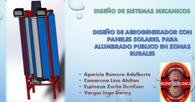 Aerogenerador con panales solares para alumbrado público en zonas de Pilcomayo hasta Orcotuna.